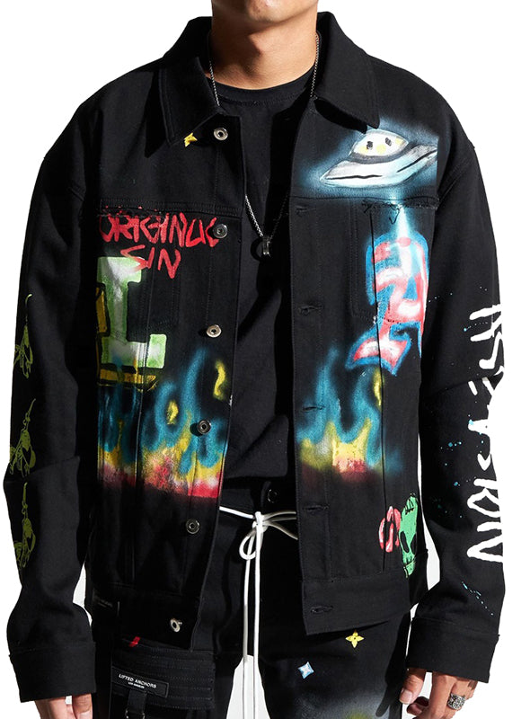 Denim Jacket Men Distressed Jean Jacket Men Denim Jacket graffiti hand painted heaven at Night