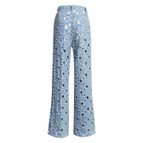 Hollow Out Wide Leg Pants Women High Waist Ripped Jeans Denim Fashion- Young Fashion