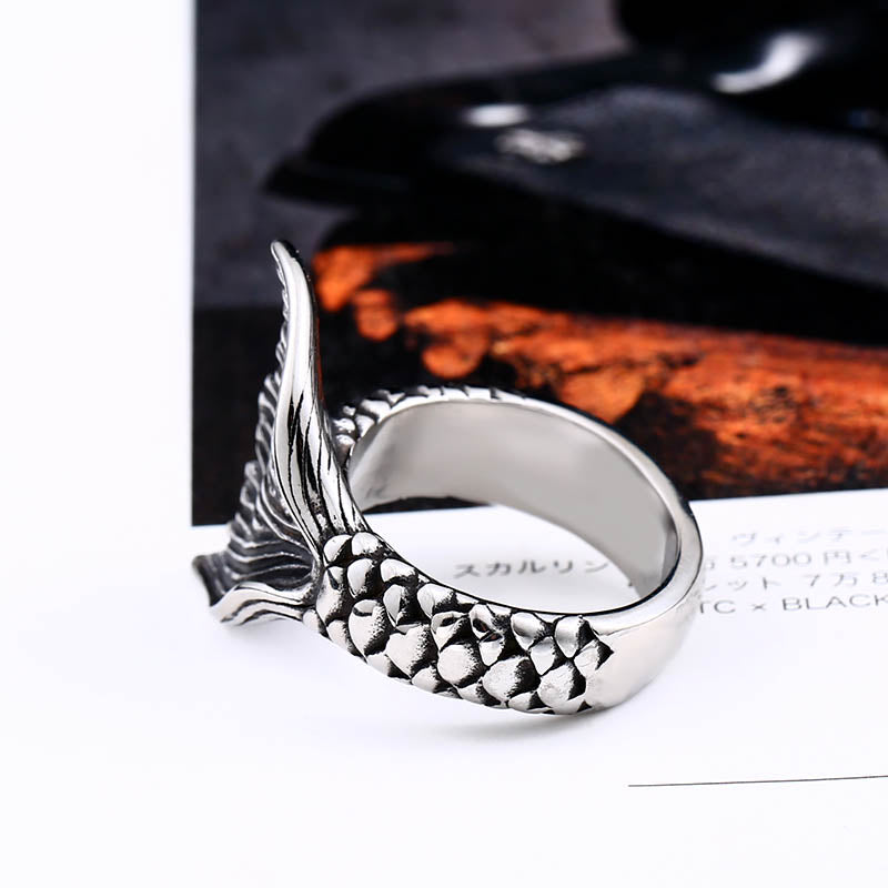 Mystical mermaid men's ring vintage antique stainless steel fashion .