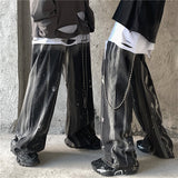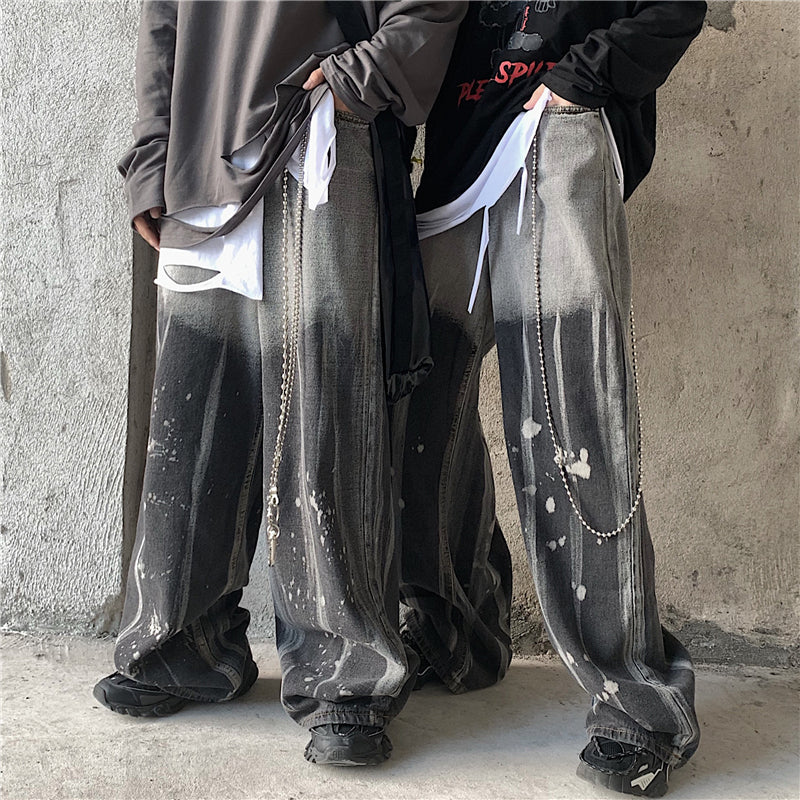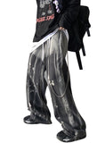 Vintage Tie Dye Women Denim Pants High Waist Asymmetrical Loose Straight Jeans Pant