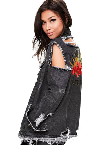 Ladies Jean Jacket Girls, cut at back and sleeve , Embroidered Jacket For Women Collection