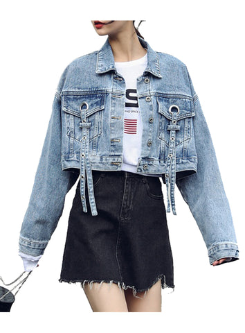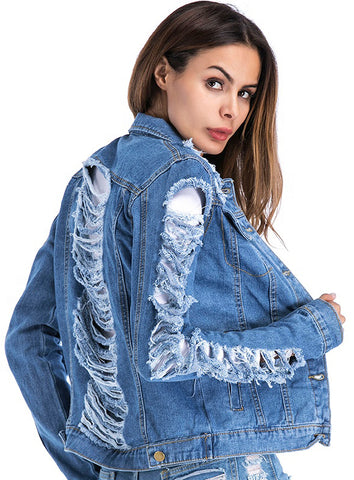Spring And Summer Street Fashion Women Cutwork/ Distress Blue Denim Jacket/Shirt Jacket