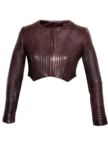 VannaModa Designer Multi Quilted Leather Cropped Jacket with Washed Vintage Look
