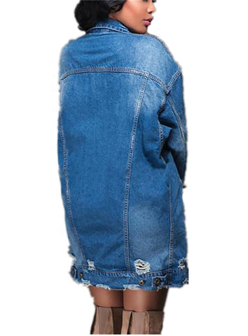 Spring And Summer Street Fashion Women Long Blue Denim Jacket/Shirt Ladies Jean Jacket