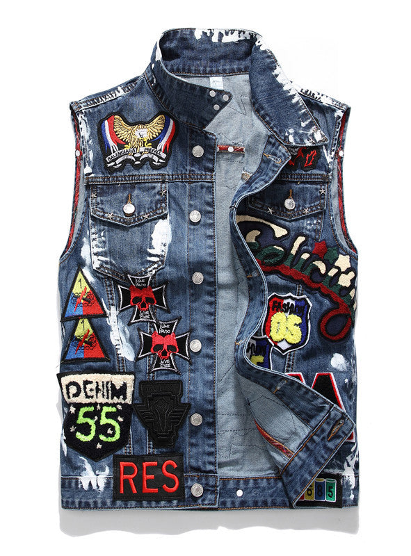 S458 Blue Denim Jacket Without Sleeve,Jean Denim Jacket Print,Sleeveless Denim Jacket