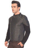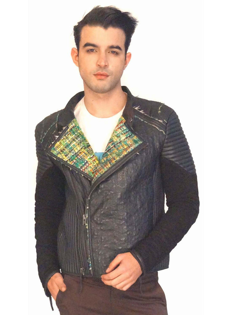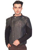 • Men Designer Structured Leather Biker Jacket with lining Handmade Fabric