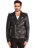 Men Washed Classic Motorcycle Biker Leather Jacket