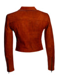 Designer Perforated Front Leather Women Jacket is un lined and is fitted. Casual style to have for holidays, parties and daily wear.