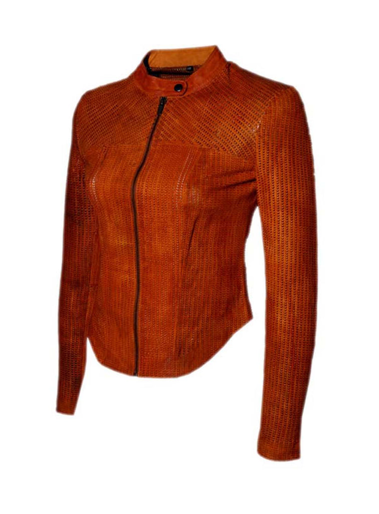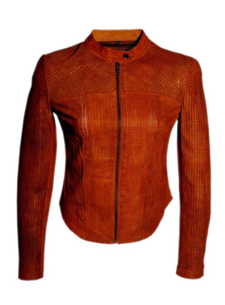 CrabRocks Designer full Perforated Leather Women Jacket is styled with full perforation body. Designer Jacket is styled with standing collar and snap button. Leather designer Jacket is unlined and is good for summers.
