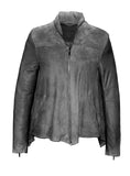 CrabRocks Waterfall Suede Drape Leather Women Jacket is designed with semi fitted leather drape waterfall jacket with asymmetrical drop look at bottom. CrabRocks Waterfall Suede Drape Leather Women Jacket is styled with unlined and sleeve is lined. Leather Suede Waterfall Jacket is tailored with zipper till top end and Sleeve is styled with Lamb Leather and zipped cuffs . A very hot style and can be worn at almost all the occasion and all dresses.