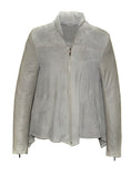 Waterfall Suede Drape Leather Women Jacket is designed with semi fitted leather drape waterfall jacket with asymmetrical drop look at bottom. CrabRocks Waterfall Suede Drape Leather Women Jacket is styled with unlined and sleeve is lined. Leather Suede Waterfall Jacket is tailored with zipper till top end and Sleeve is styled with Lamb Leather and zipped cuffs . A very hot style and can be worn at almost all the occasion and all dresses.