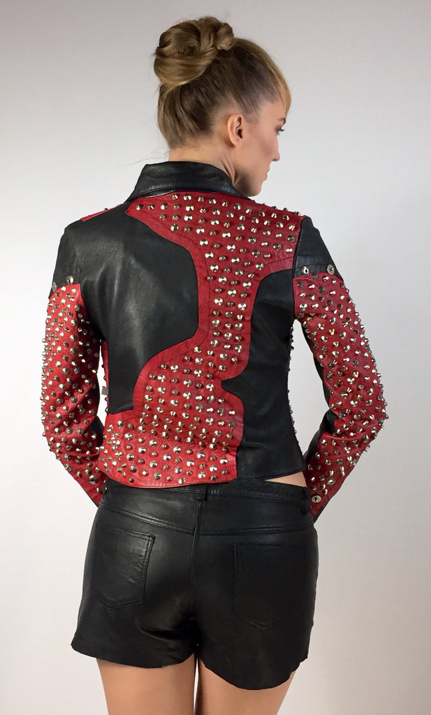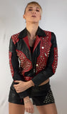 CrabRocks Leather Multi Studded Designer Woman Jacket is designed multi studded rivets jacket.